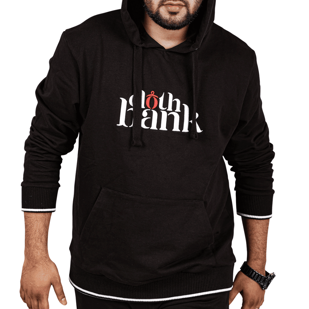Sweat hoodie jacket with kangaroo pocket + 3D embroidered on Center chest and Jacquard yarn dyed elasthene rib on bottom and sleeve hem.